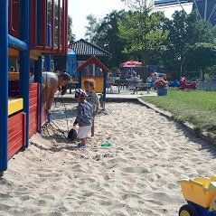 Naast diverse zandbakken, schommels, wippen, klimtoestellen, kabelbaan etc. etc. vind je ook voor de wat oudere kinderen uitdagende behendigheidsspelen en toestellen. Dus al met al een speeltuin waar zowel jongere en oudere kinderen zich prima weten te vermaken!